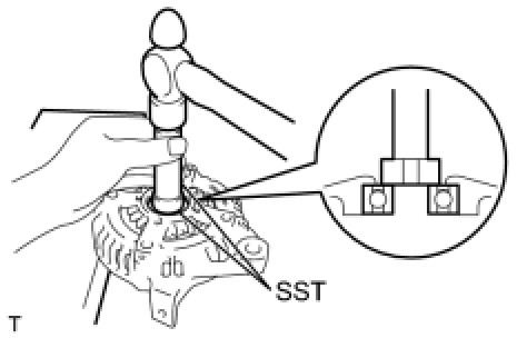 (b) Using SST and a hammer, tap out the generator drive end frame bearing from the generator drive end frame.