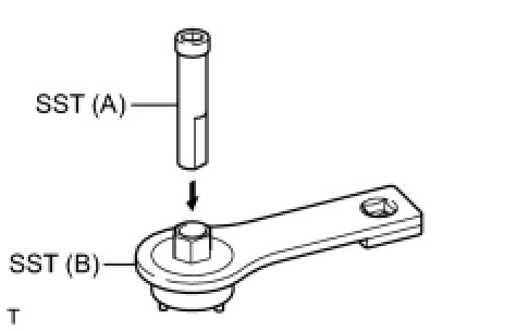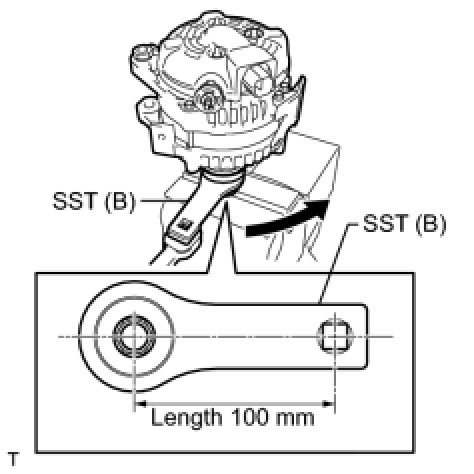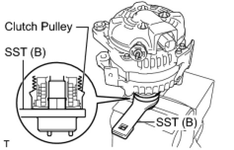 (f) Tighten the pulley by turning SST (B) in the direction shown in the illustration.