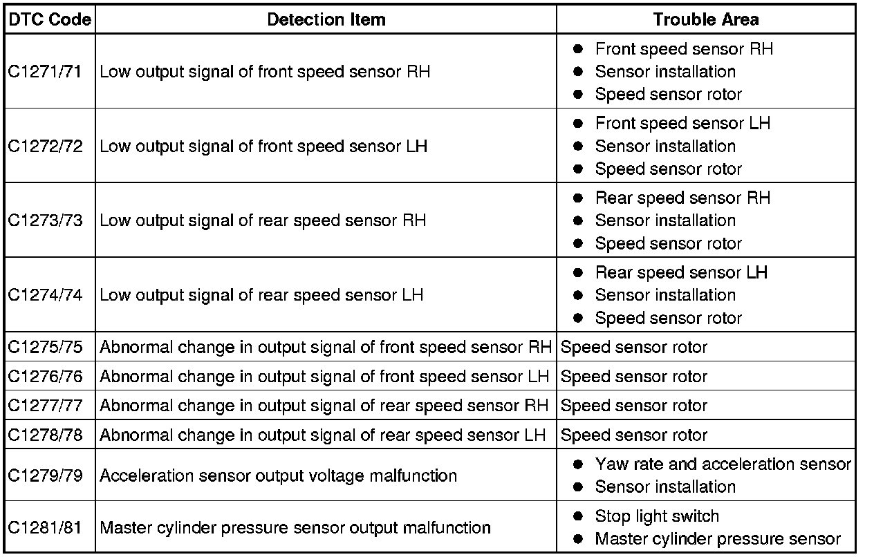 * During Test Mode (signal check), the skid control ECU records all DTCs of the sensor check function. By performing Test Mode (signal check), the codes are cleared if a normal condition is confirmed. The remaining codes are the codes where a malfunction was found.