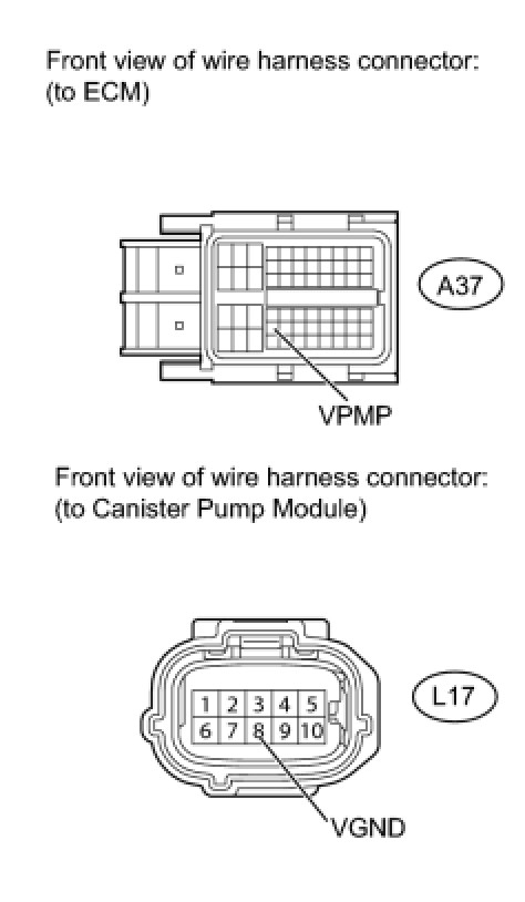 (c) Apply the battery voltage across VLVB and VGND of the canister pump module.