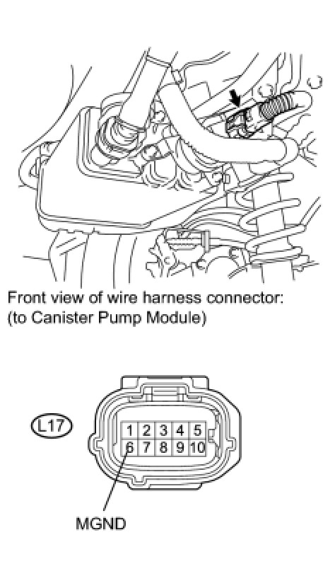 When replacing the canister, check the canister pump module interior and related pipes for water, fuel and other liquids. If liquids are present, check for disconnections and/or cracks in the following: 1) the pipe from the air inlet port to the canister pump module; 2) the canister filter; and 3) the fuel tank vent hose.