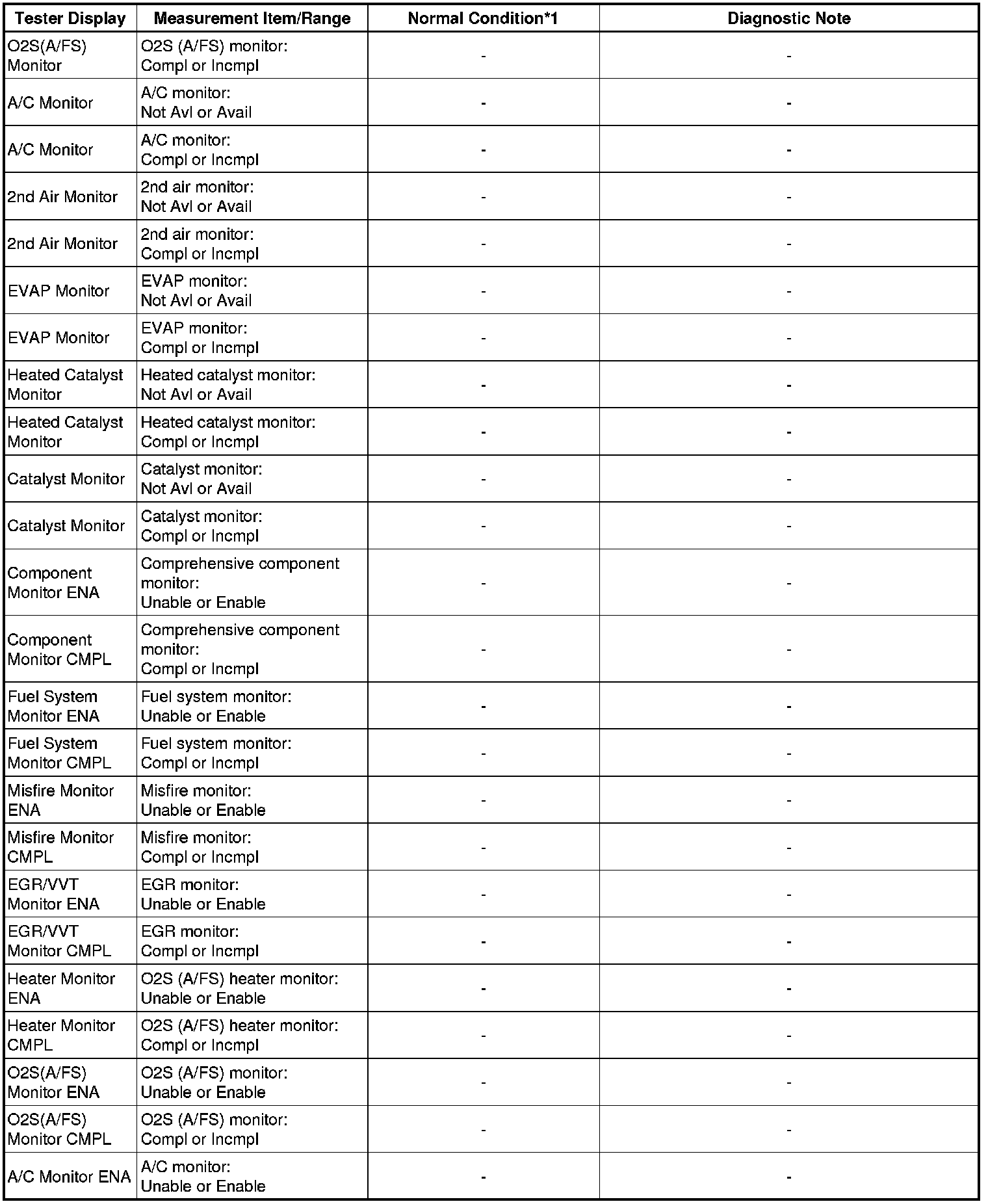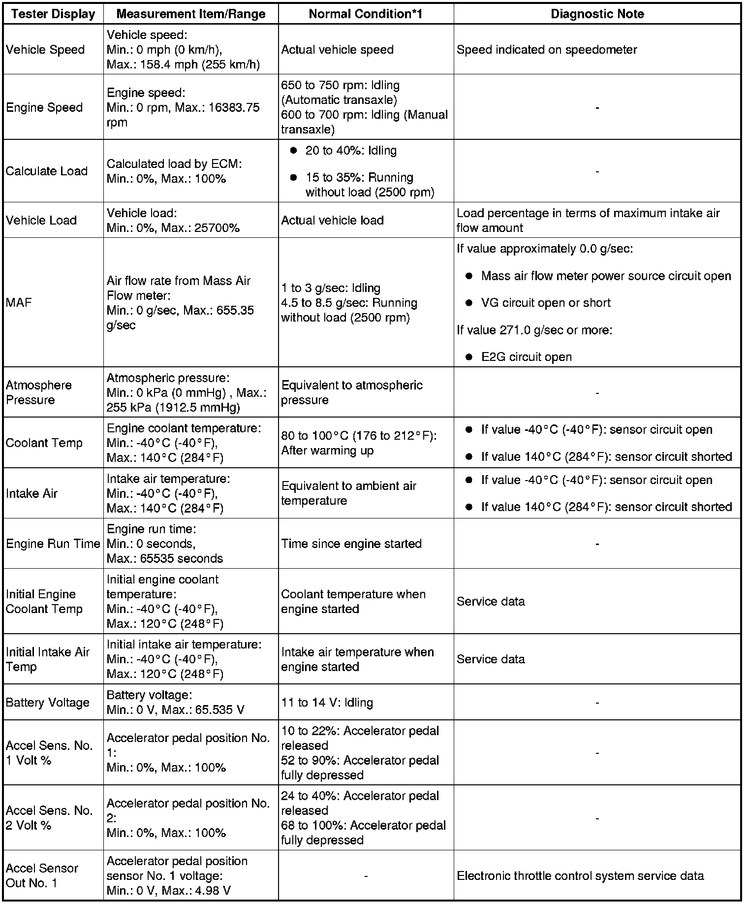 * *1: If no idling conditions are specified, the shift lever should be in N or P, and the A/C switch and all accessory switches should be off.