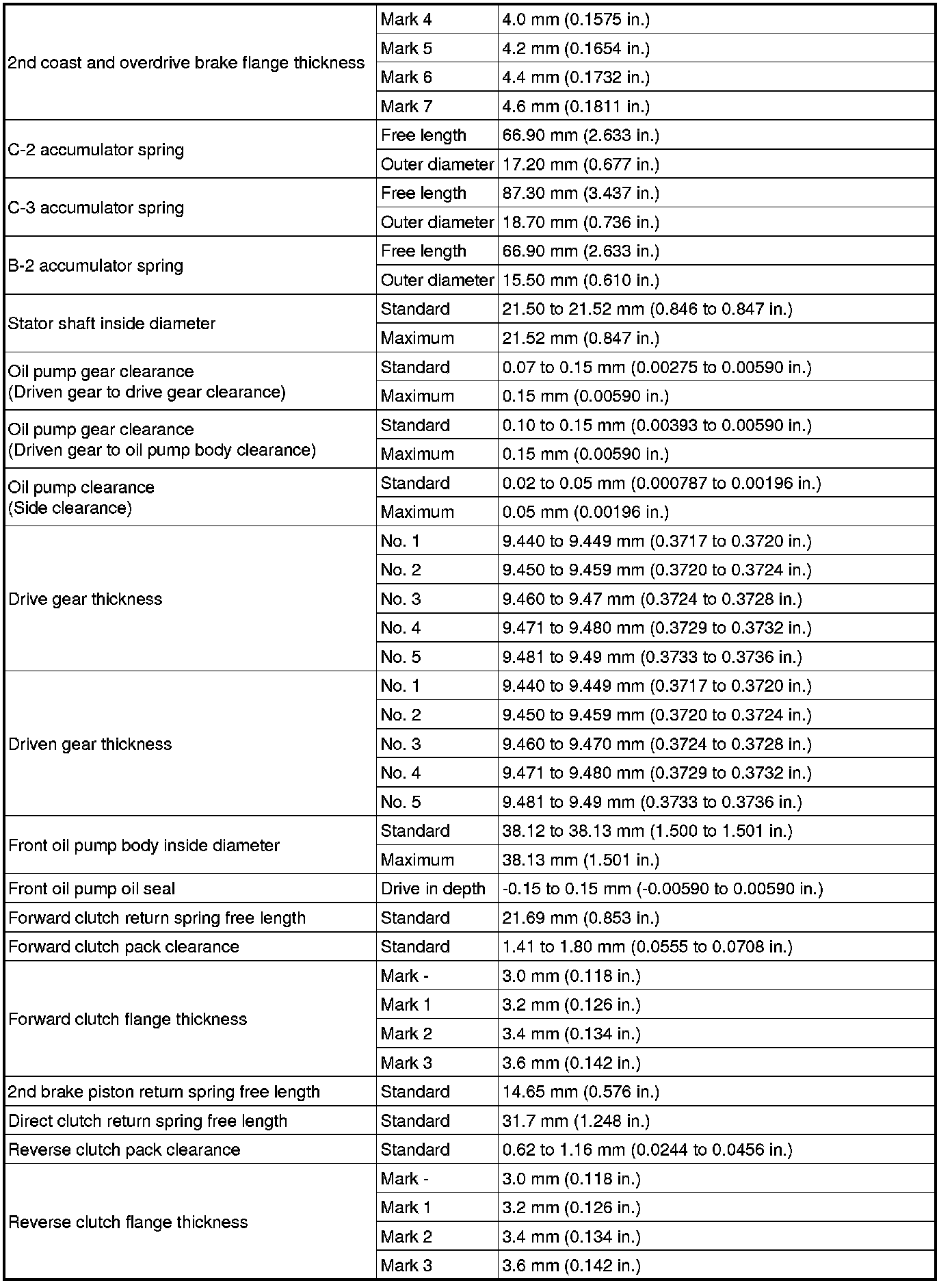 SPECIFICATIONS: U341E AUTOMATIC TRANSMISSION / TRANSAXLE: SERVICE DATA