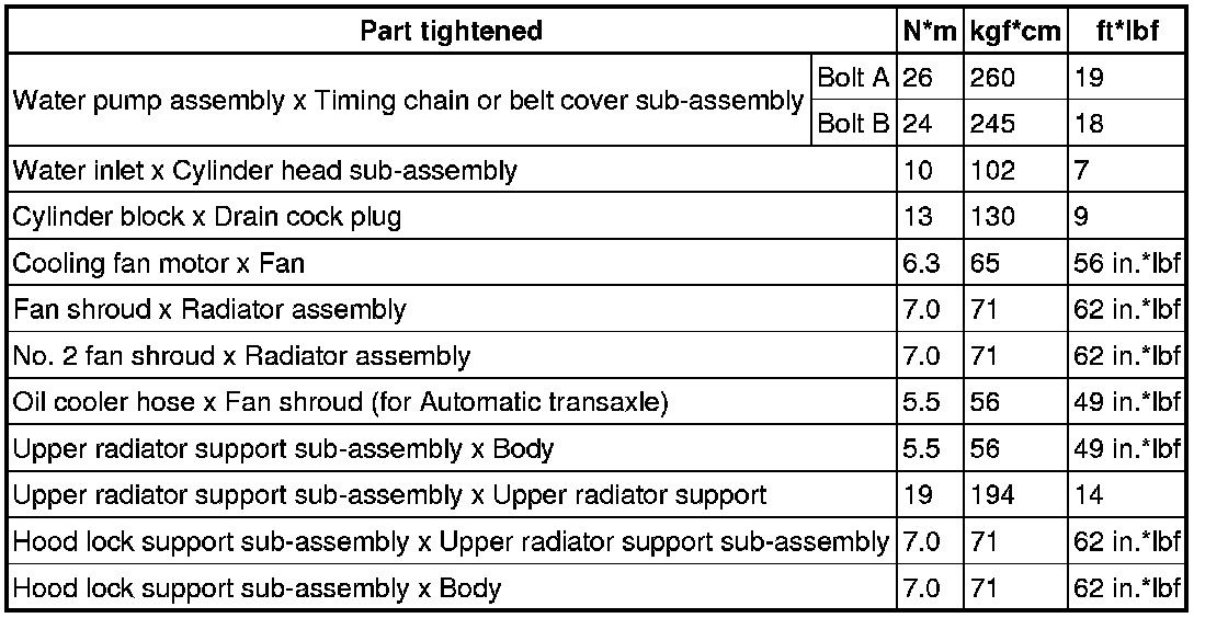 SPECIFICATIONS: 2ZR-FE COOLING: TORQUE SPECIFICATIONS