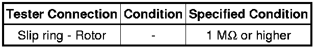 (2) If the result is not as specified, replace the generator rotor assembly.