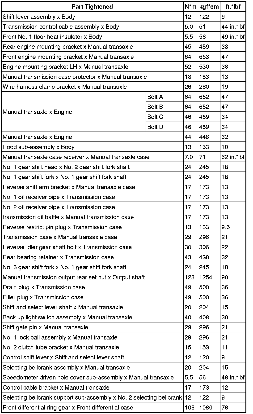 SPECIFICATIONS: E351 MANUAL TRANSMISSION / TRANSAXLE: TORQUE SPECIFICATIONS