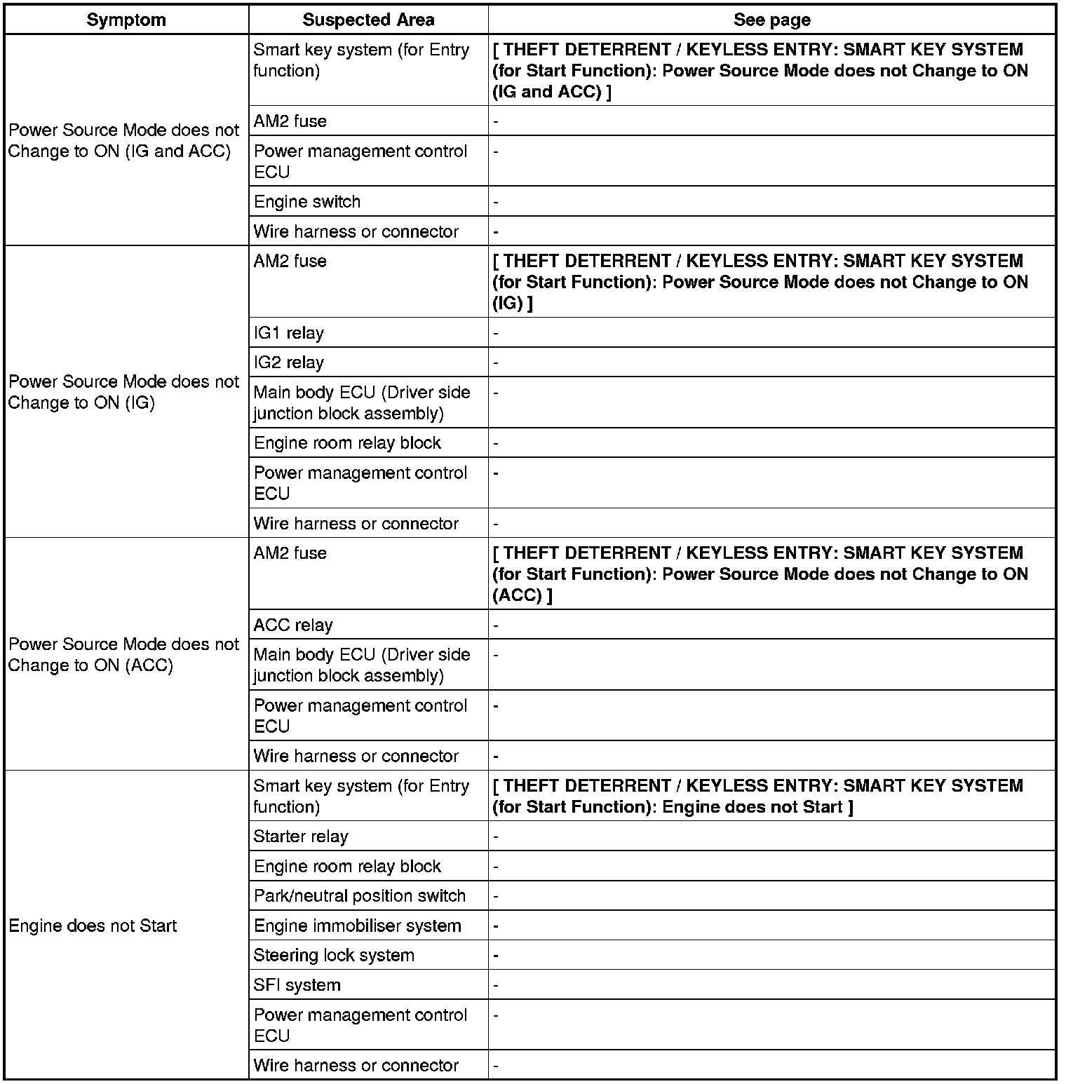 THEFT DETERRENT / KEYLESS ENTRY: SMART KEY SYSTEM (for Start Function): PROBLEM SYMPTOMS TABLE