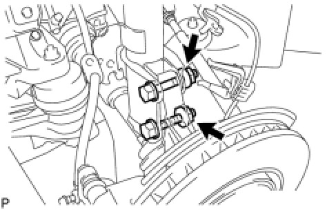 (b) Remove the 2 nuts on the lower side of the front shock absorber.