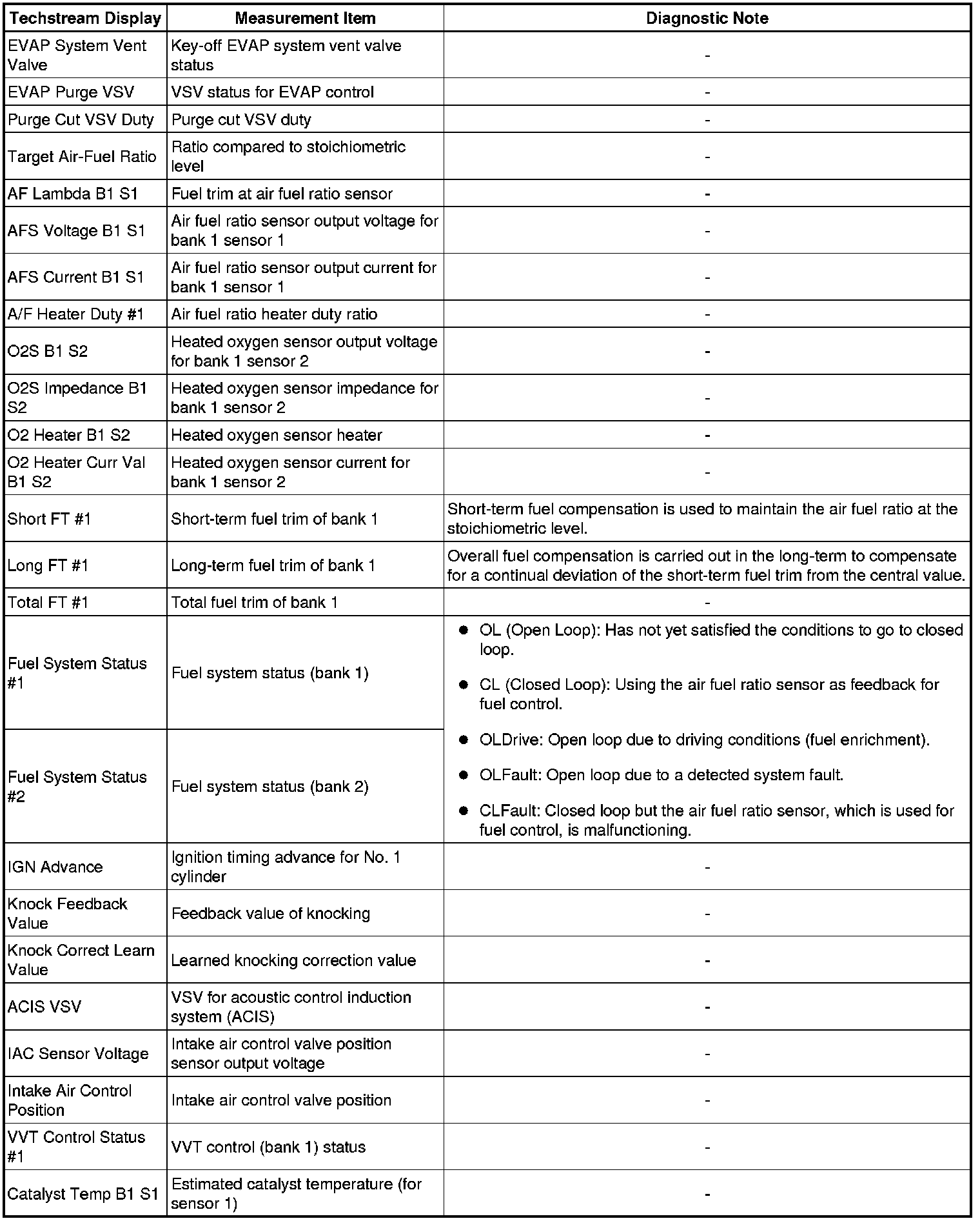* The ECM records vehicle and driving condition information as freeze frame data the moment a DTC is stored. When troubleshooting, freeze frame data can be helpful in determining whether the vehicle was moving or stationary, whether the engine was warmed up or not, whether the air fuel ratio was lean or rich, as well as other data recorded at the time of a malfunction.