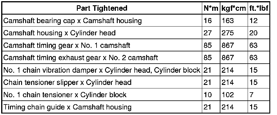 SPECIFICATIONS: 1AR-FE ENGINE MECHANICAL: TORQUE SPECIFICATIONS