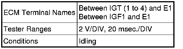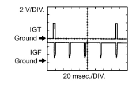 Igniter IGT signal (from ECM to igniter) and Igniter IGF signal (from igniter to ECM):