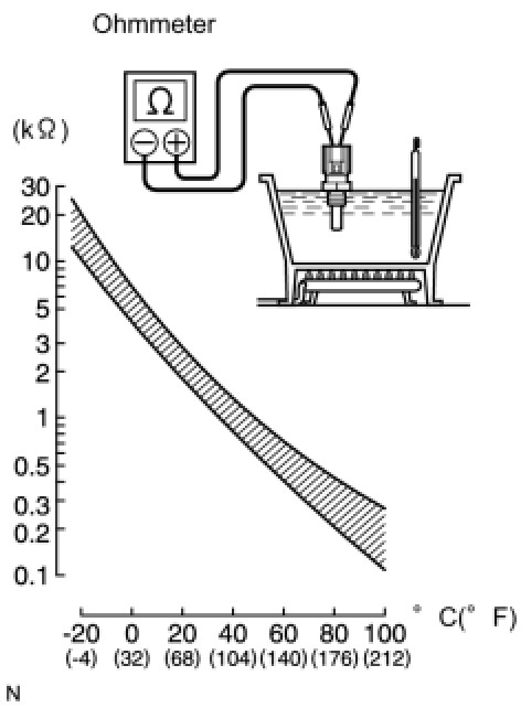 When checking the engine coolant temperature sensor in water, keep the terminals dry. After the check, wipe the sensor dry.