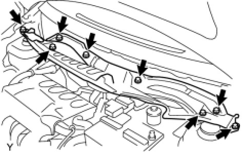 (b) Install the cowl top panel outer center bracket and install the 2 bolts.