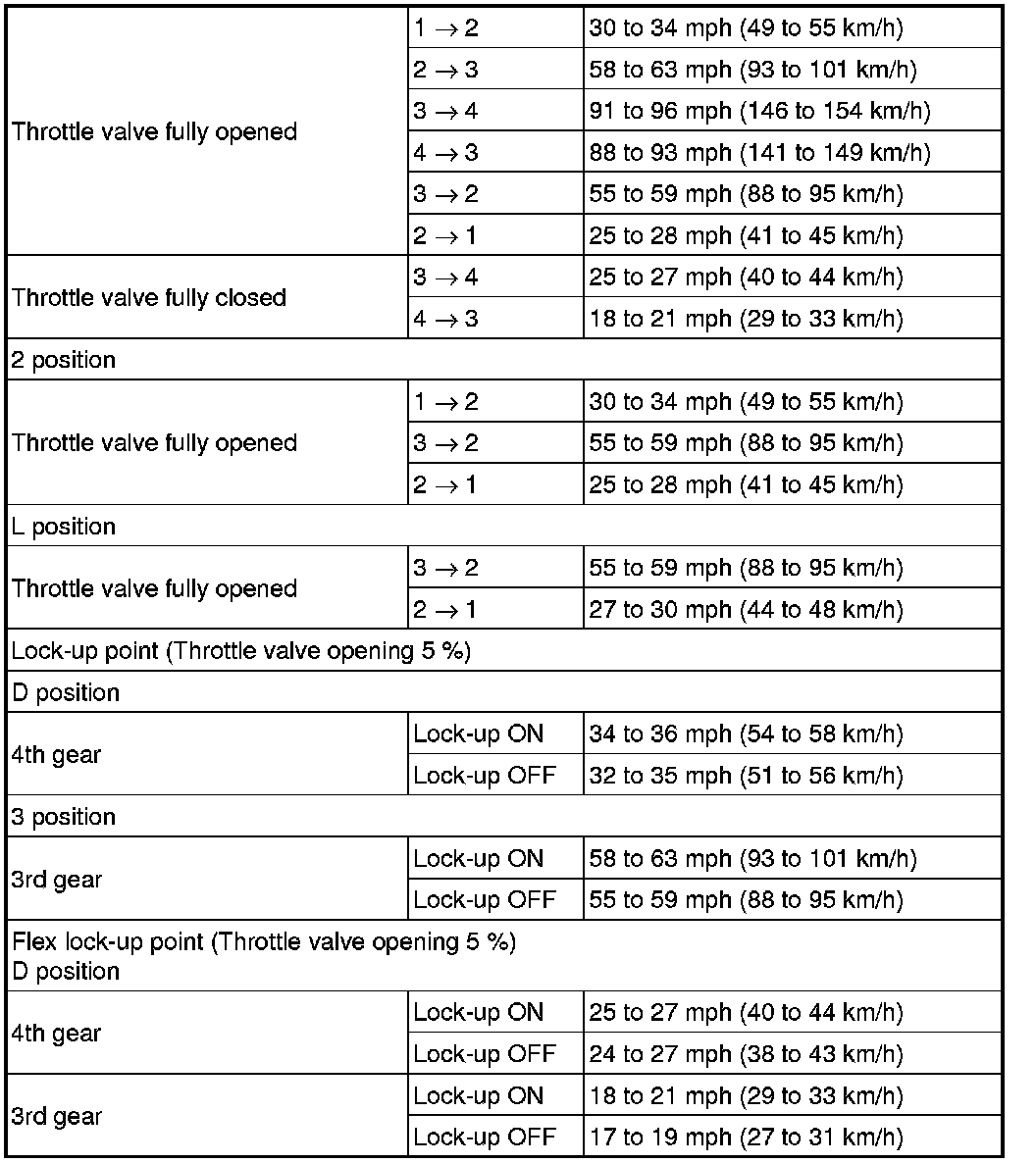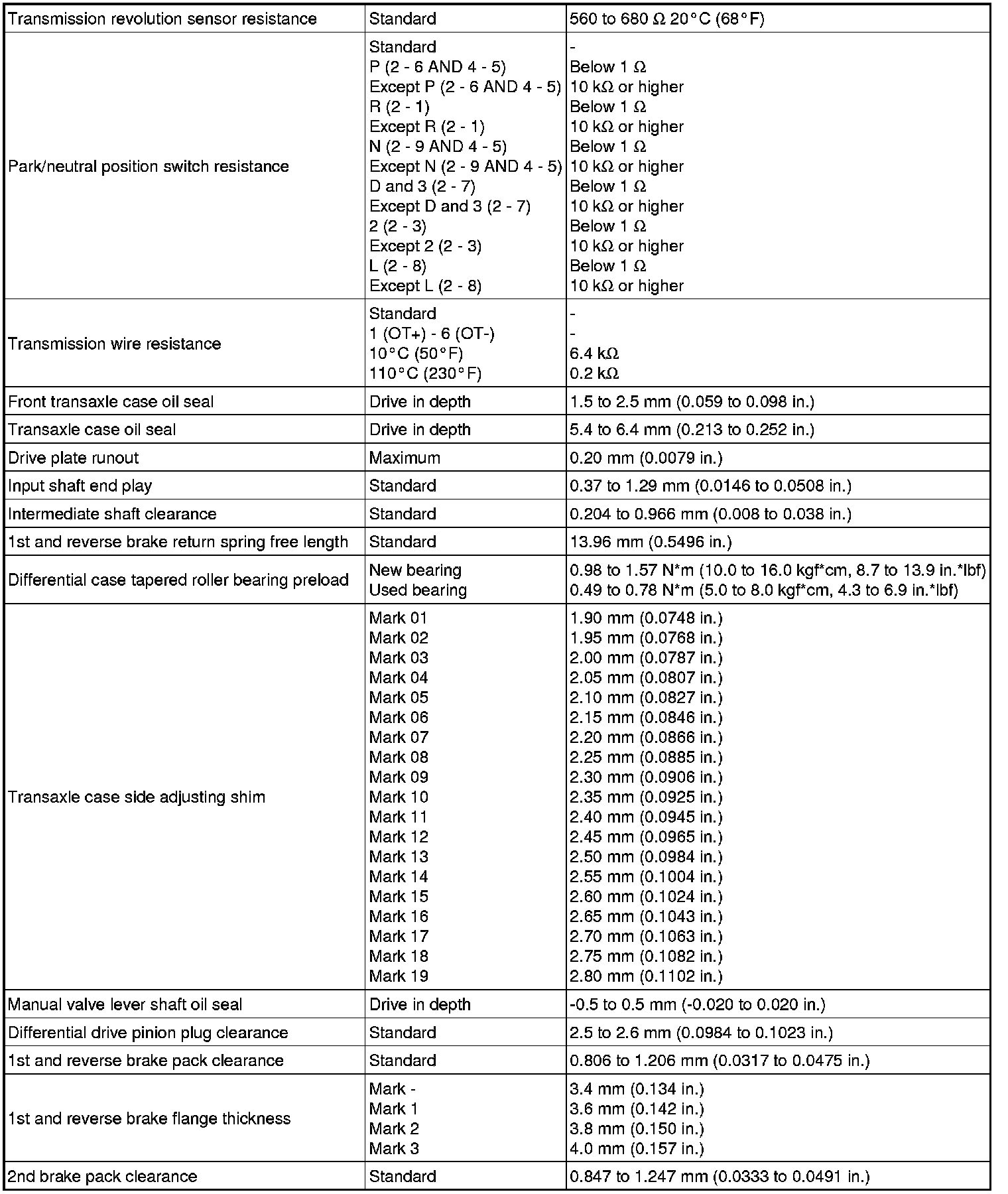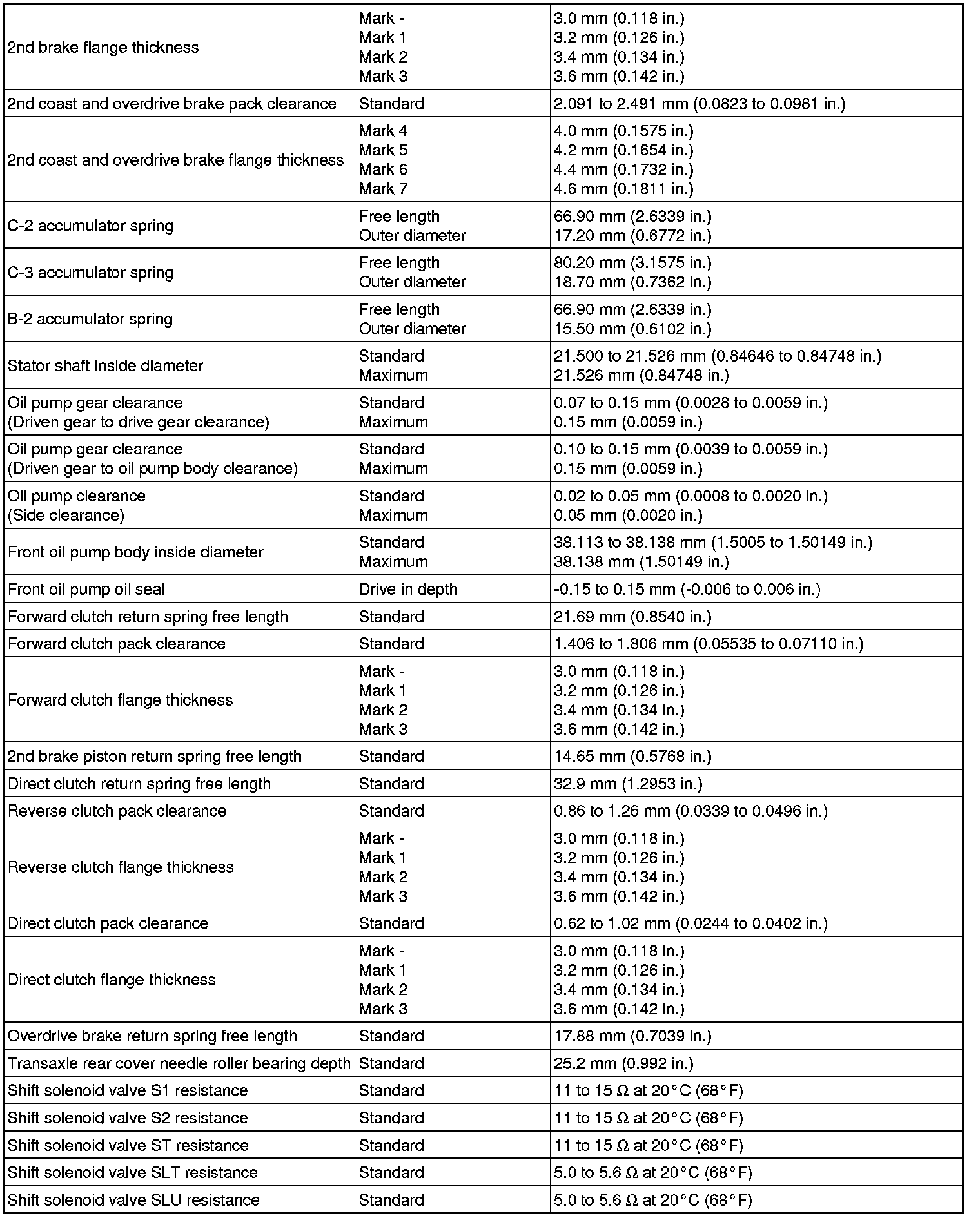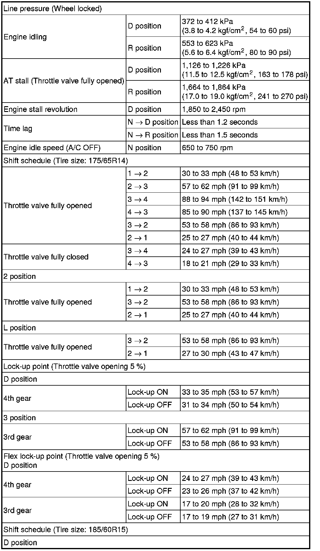 SERVICE SPECIFICATIONS: U340E AUTOMATIC TRANSAXLE: SERVICE DATA