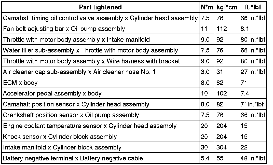 SERVICE SPECIFICATIONS: 1NZ-FE ENGINE CONTROL SYSTEM: TORQUE SPECIFICATIONS