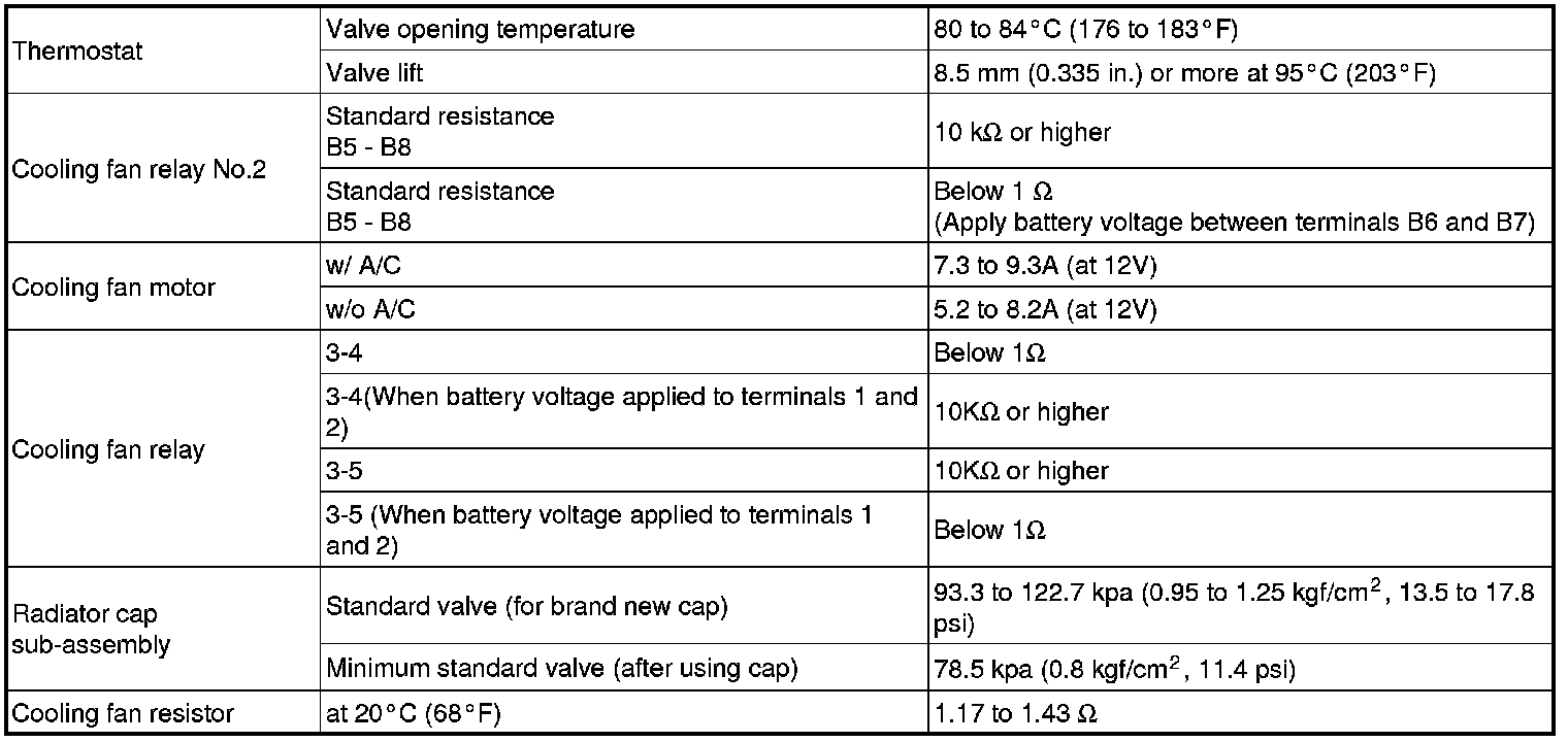 SERVICE SPECIFICATIONS: 1NZ-FE COOLING: SERVICE DATA