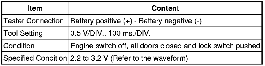 When measuring the battery voltage, while operating the lock switch of a door handle, bring the electrical key transmitter within the entry operating range to perform the measurement. For the entry operating range, refer to System Description Door Lock - Smart Key System.