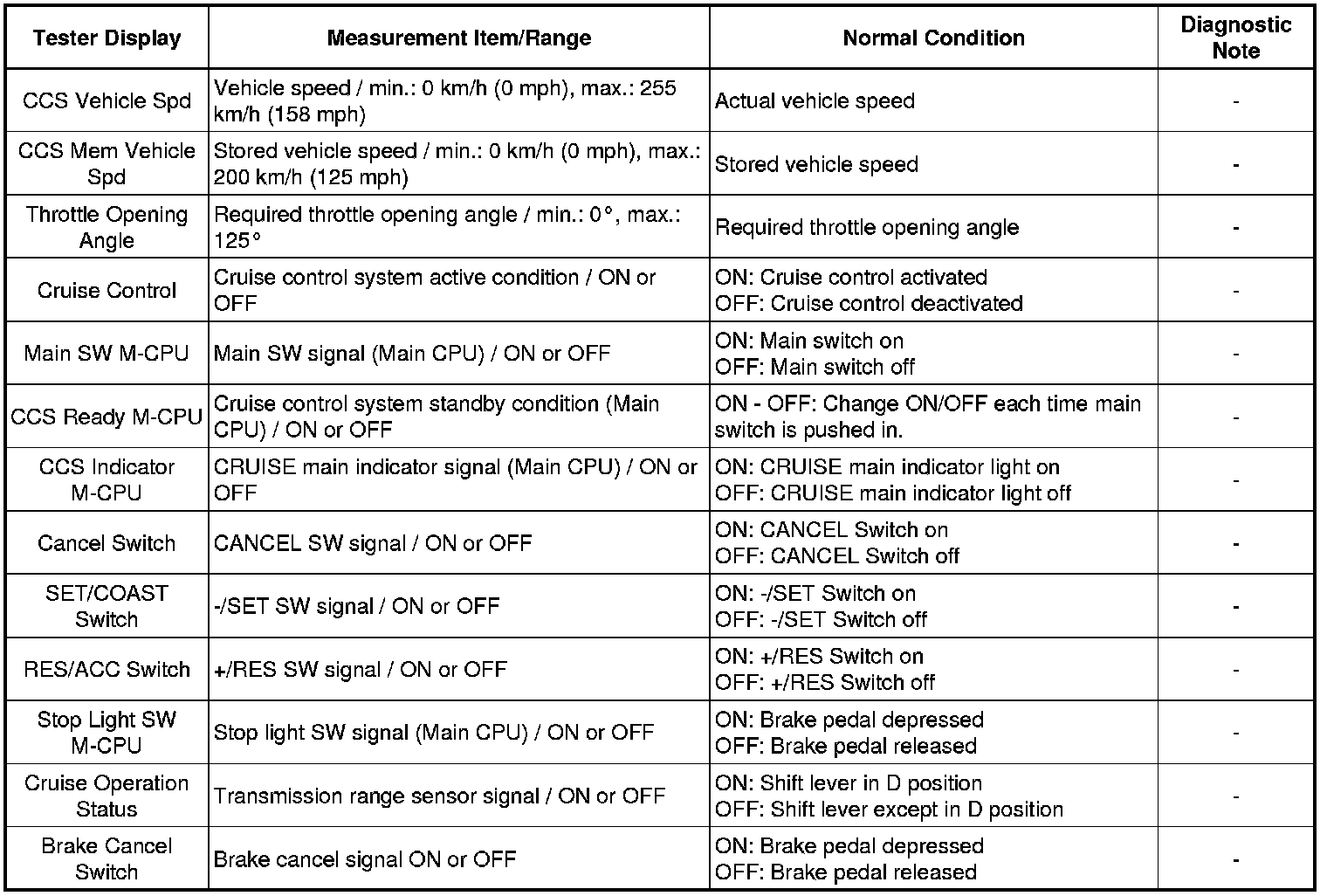 CRUISE CONTROL: CRUISE CONTROL SYSTEM: DATA LIST / ACTIVE TEST