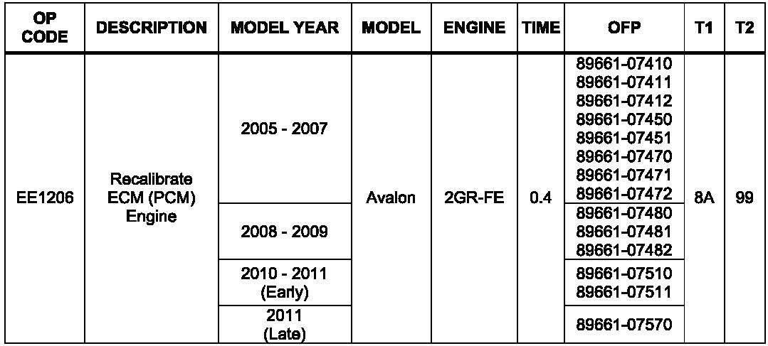 Some 20O5-2011 model year Avalon vehicles equipped with 2GR-FE engines may exhibit a MIL "ON" condition with Diagnostic Trouble Code (DTC) P0456 - Evaporative Emission Control System Leak Detected ("Very Small Leak) - when no leak is present. The Engine Control Module/ECM (SAE term: Powertrain Control Module/PCM) logic has been modified to reduce the possibility of this condition occurring. Use the following repair procedure to address this condition