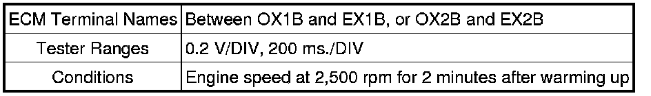 If the waveform is not similar to that shown in the illustration, check the waveform again after idling for 10 minutes or more.