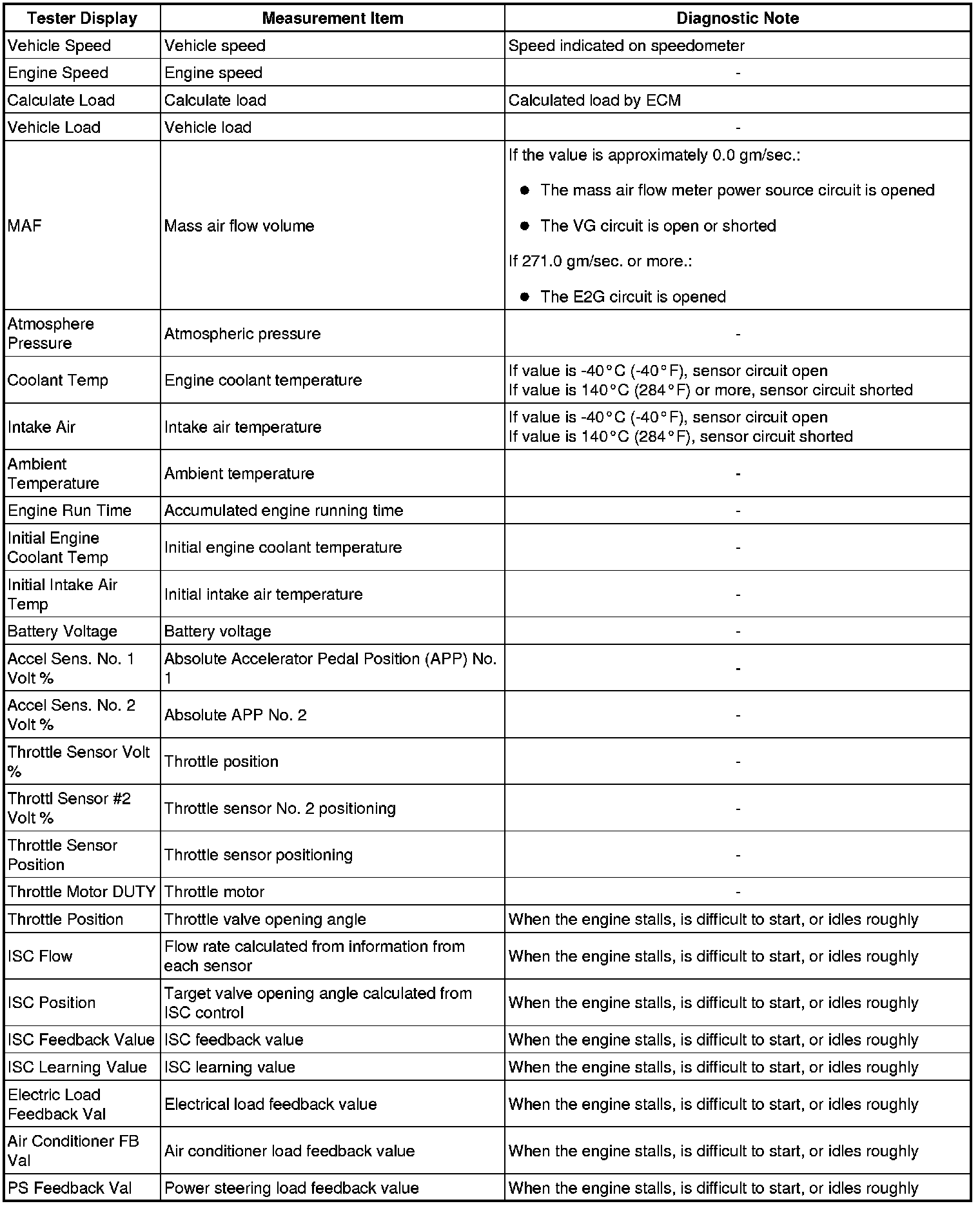 2GR-FE ENGINE CONTROL SYSTEM: SFI SYSTEM: FREEZE FRAME DATA