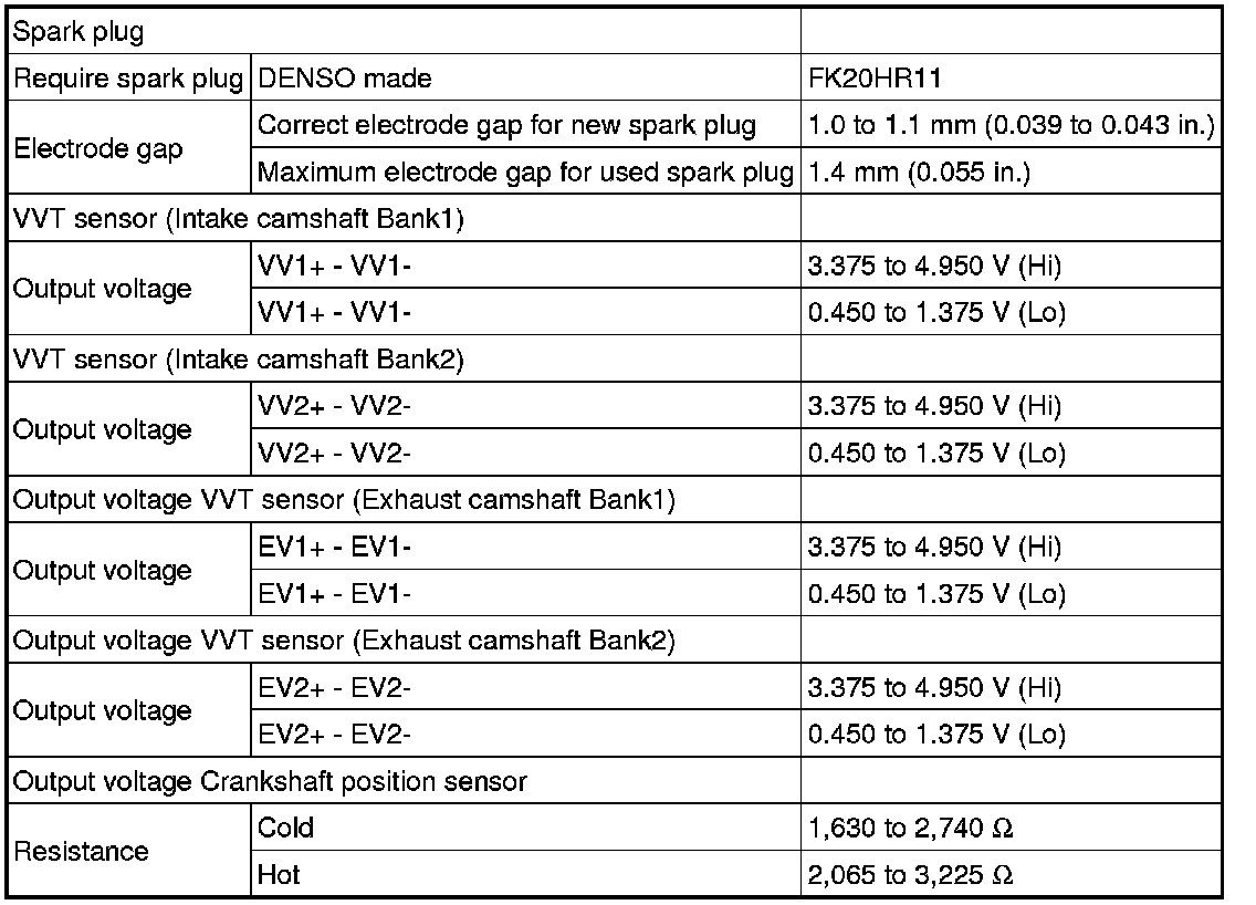 SERVICE SPECIFICATIONS: 2GR-FE IGNITION: SERVICE DATA