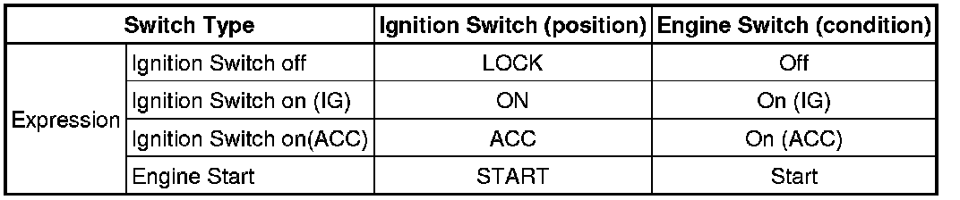 The type of ignition switch used on this model differs according to the specifications of the vehicle.