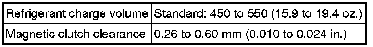 SERVICE SPECIFICATIONS: AIR CONDITIONING: SERVICE DATA