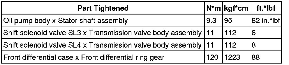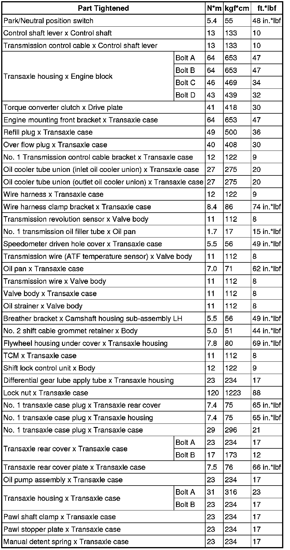 SERVICE SPECIFICATIONS: U660E AUTOMATIC TRANSAXLE: TORQUE SPECIFICATIONS