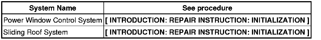 When disconnecting the negative (-) battery cable, initialize the following systems after the cable is reconnected.