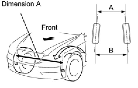 (d) Put tread center marks on the rearmost points of the front wheels and measure the distance between the marks (dimension B).