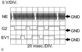 If the waveform is not similar to that shown in the illustration, check the waveform again after idling for 10 minutes or more.