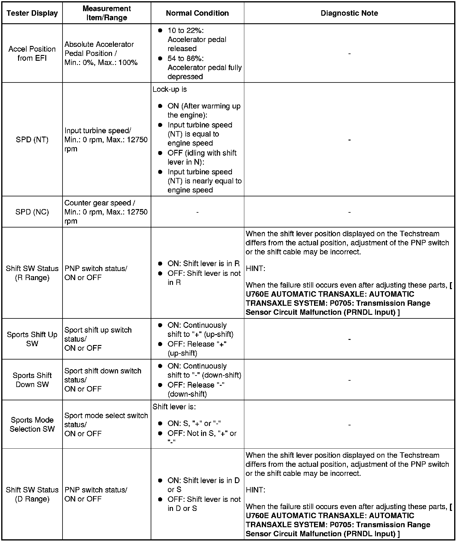 U760E AUTOMATIC TRANSAXLE: AUTOMATIC TRANSAXLE SYSTEM: DATA LIST / ACTIVE TEST