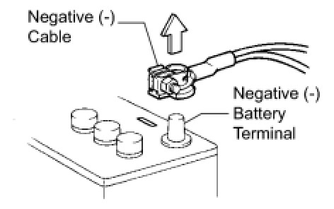 (1) Before performing electronic work, disconnect the cable from the negative (-) battery terminal to prevent component and wire damage caused by accidental short circuits.