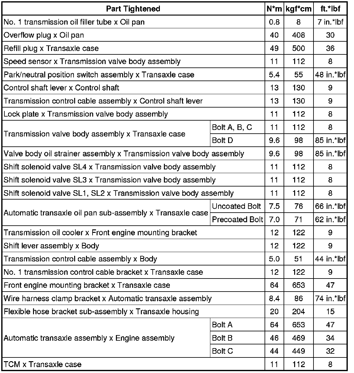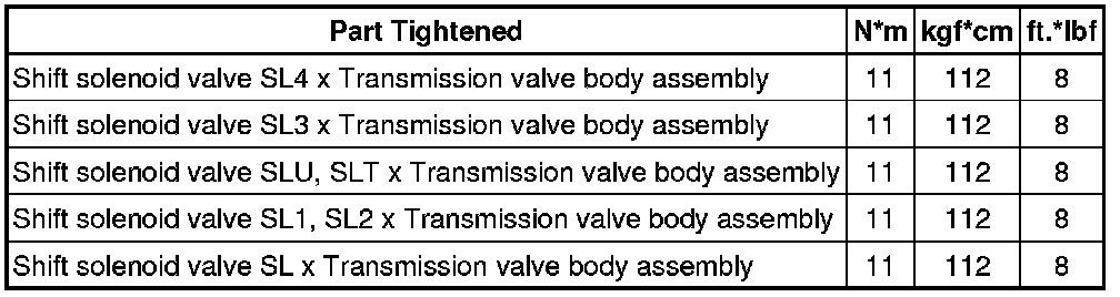 SERVICE SPECIFICATIONS: U760E AUTOMATIC TRANSAXLE: TORQUE SPECIFICATIONS