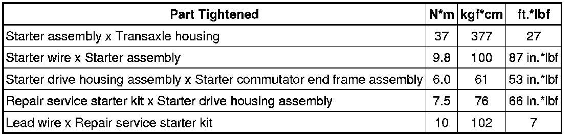 SERVICE SPECIFICATIONS: 2AR-FE STARTING: TORQUE SPECIFICATIONS