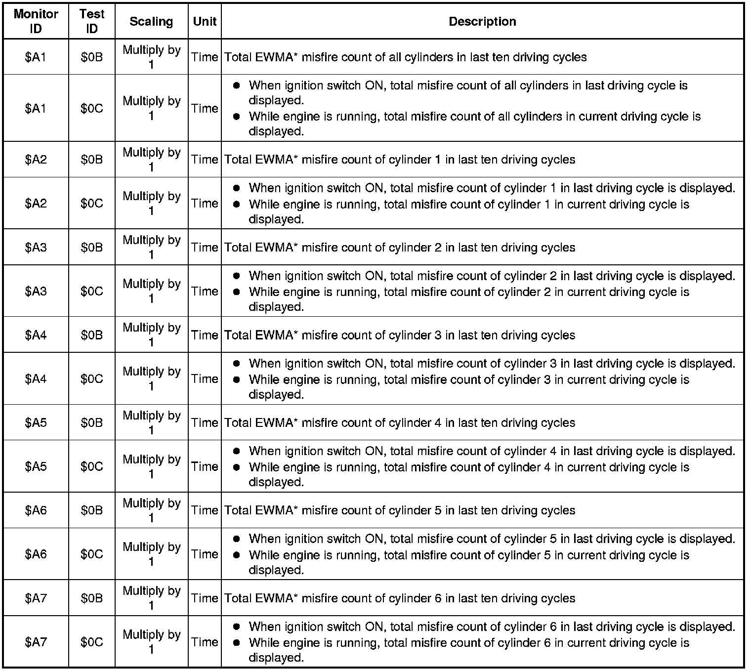 *: EWMA (Exponential Weighted Moving Average) misfire counts for last 10 driving cycles (calculated)