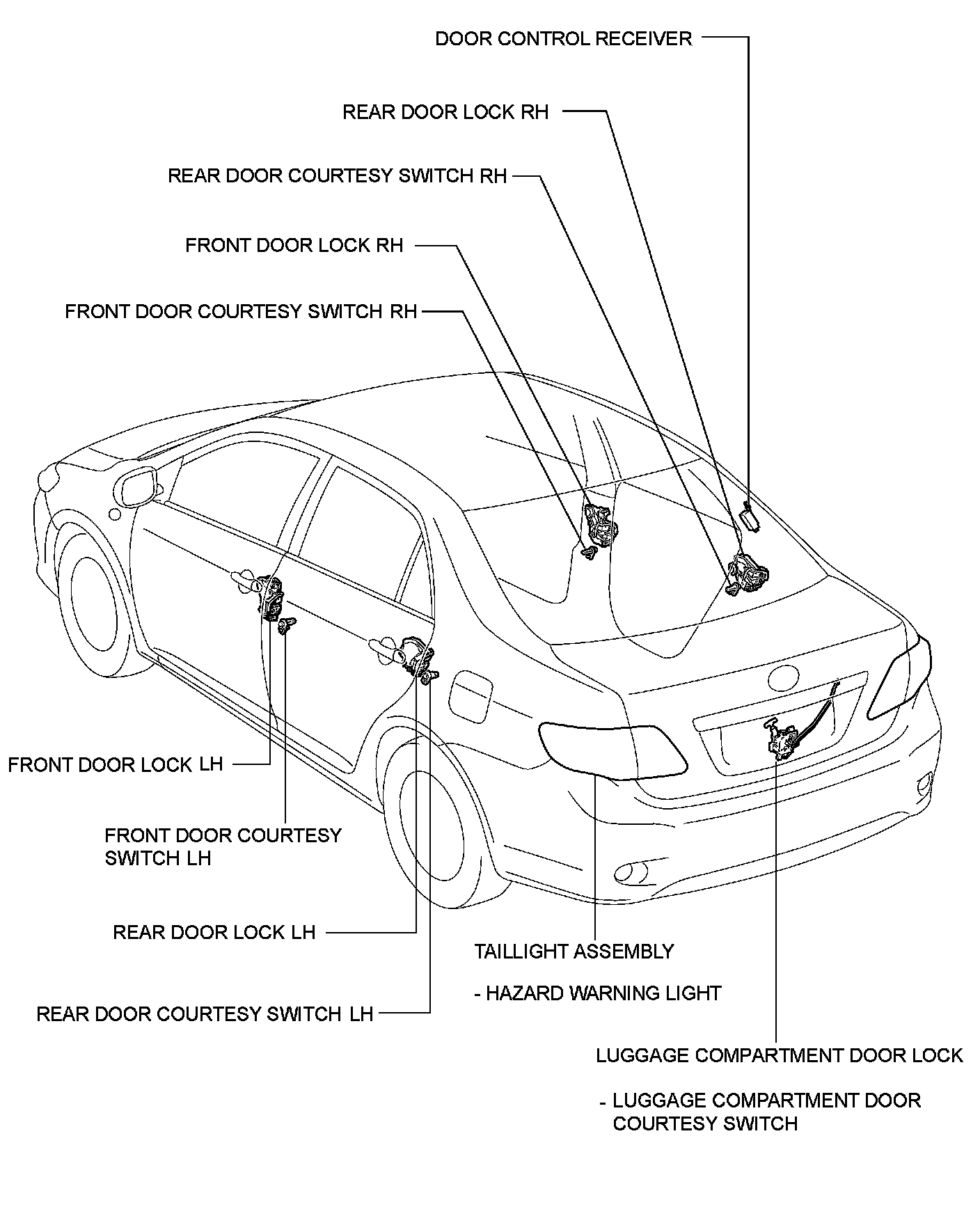 DOOR LOCK: WIRELESS DOOR LOCK CONTROL SYSTEM (w/ Smart Key System): PARTS LOCATION