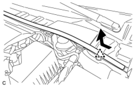 (b) Disengage the 5 claws and remove the center cowl top ventilator louver.