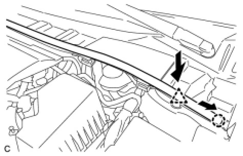 (a) Slide the hood to cowl top seal and disengage the clip as shown in the illustration.