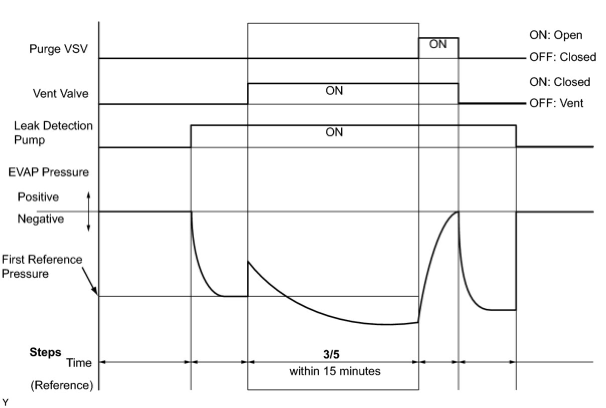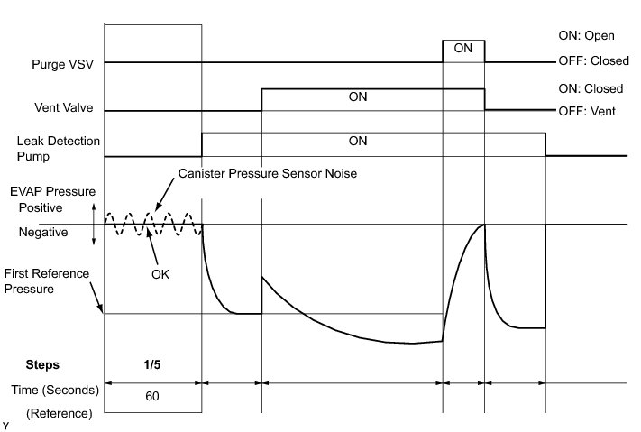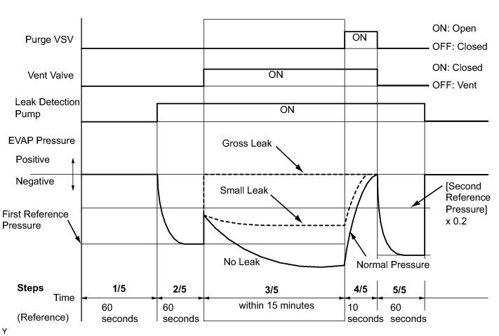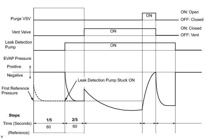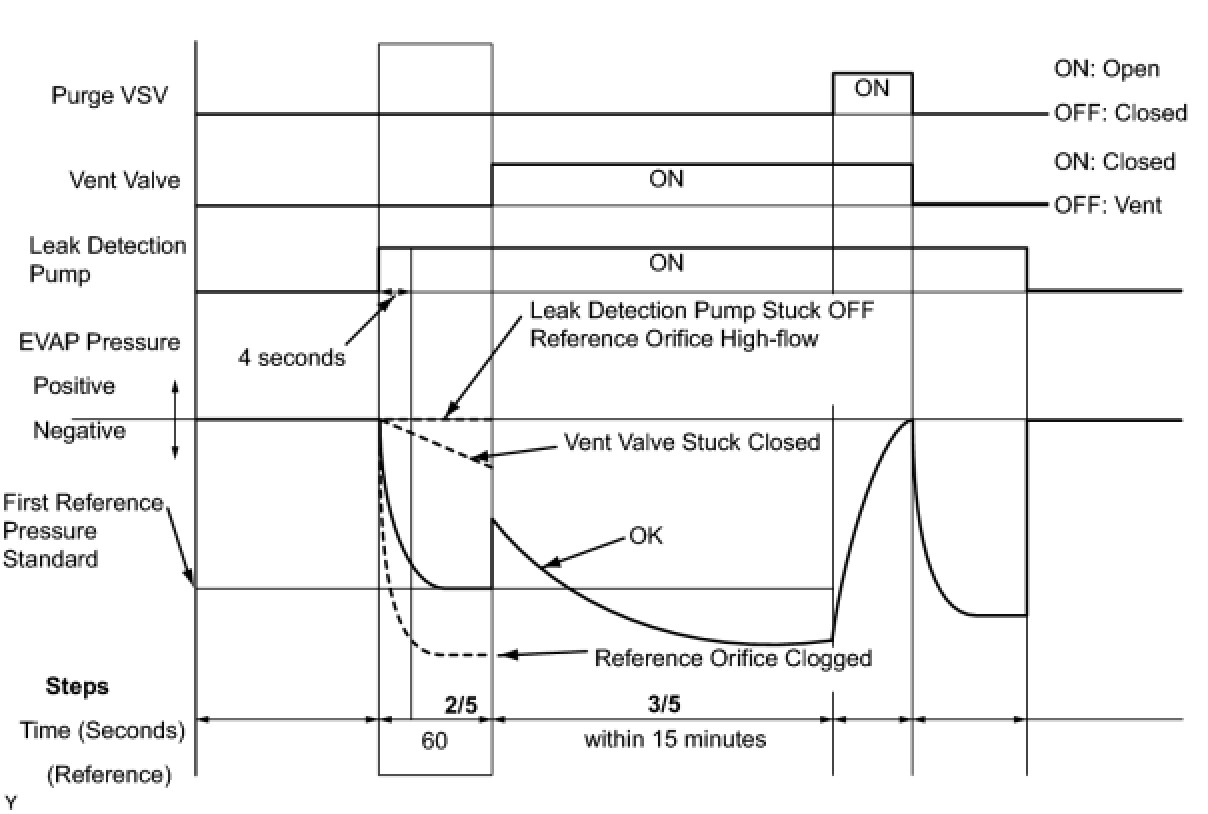 (b) Compare the EVAP pressure in step 3/5 and the second reference pressure (step 5/5).