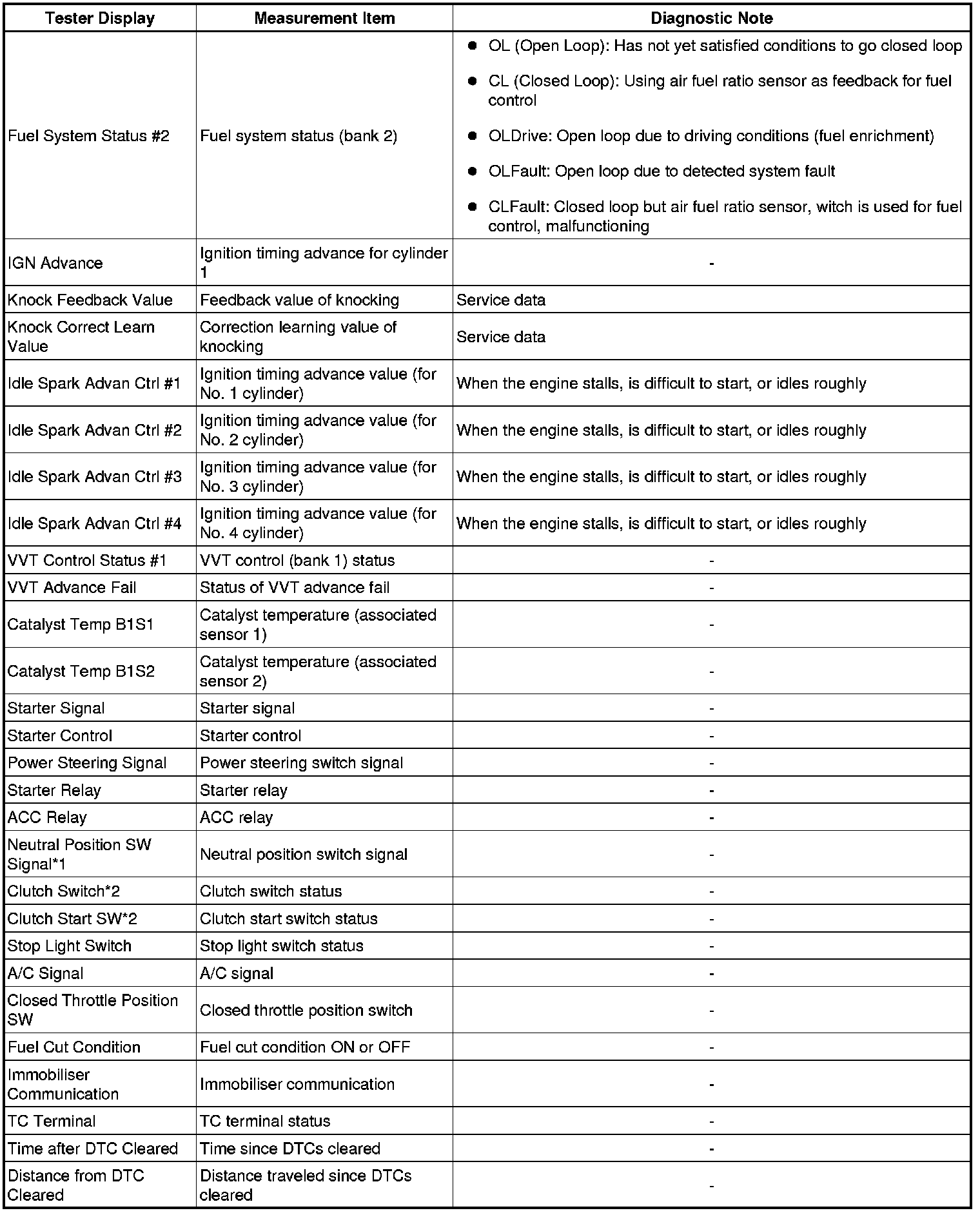 2ZR-FE ENGINE CONTROL: SFI SYSTEM: FREEZE FRAME DATA