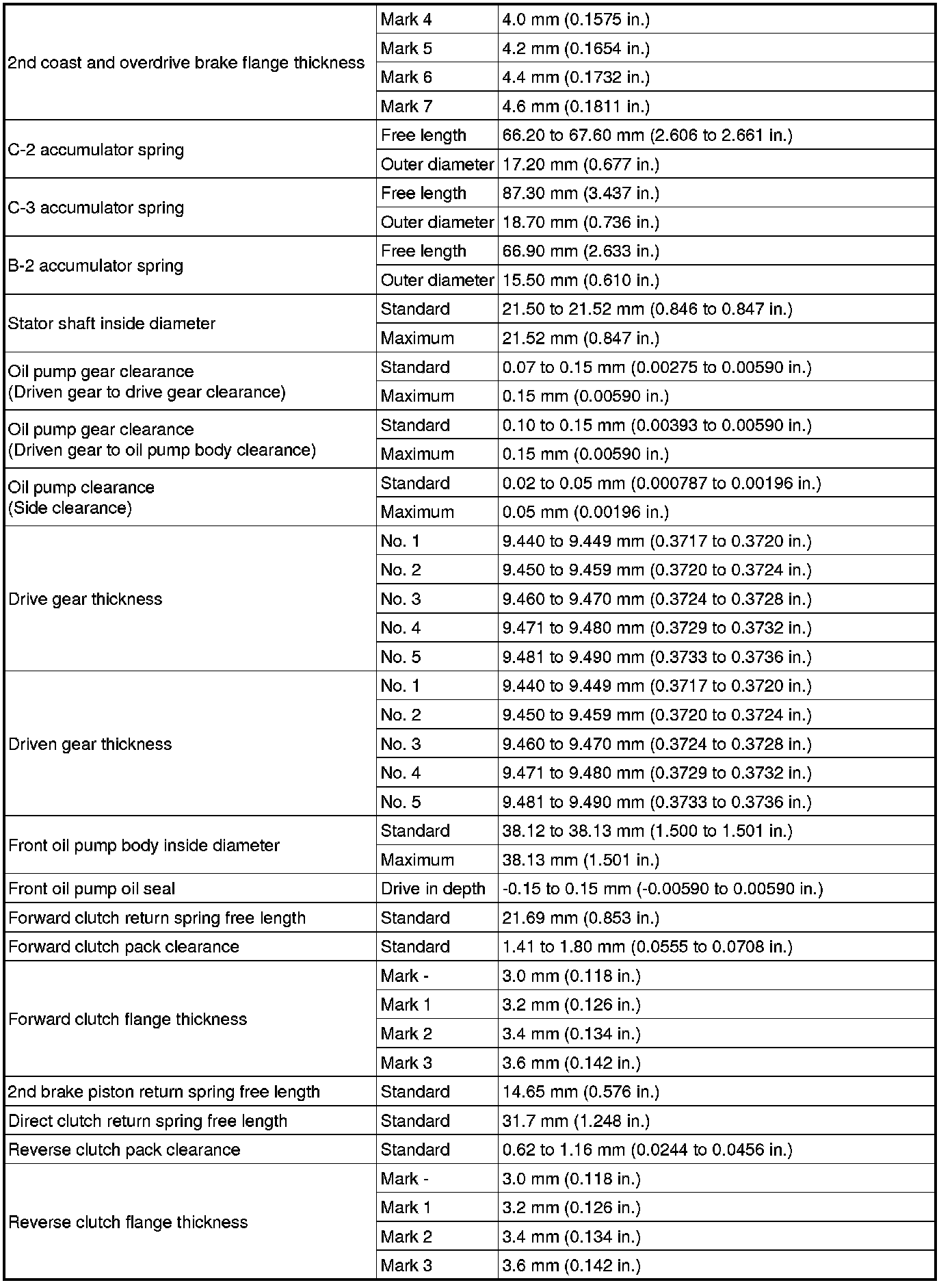 SPECIFICATIONS: U341E AUTOMATIC TRANSMISSION / TRANSAXLE: SERVICE DATA