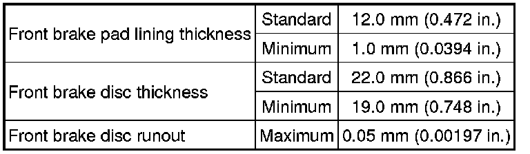 SPECIFICATIONS: BRAKE (FRONT): SERVICE DATA