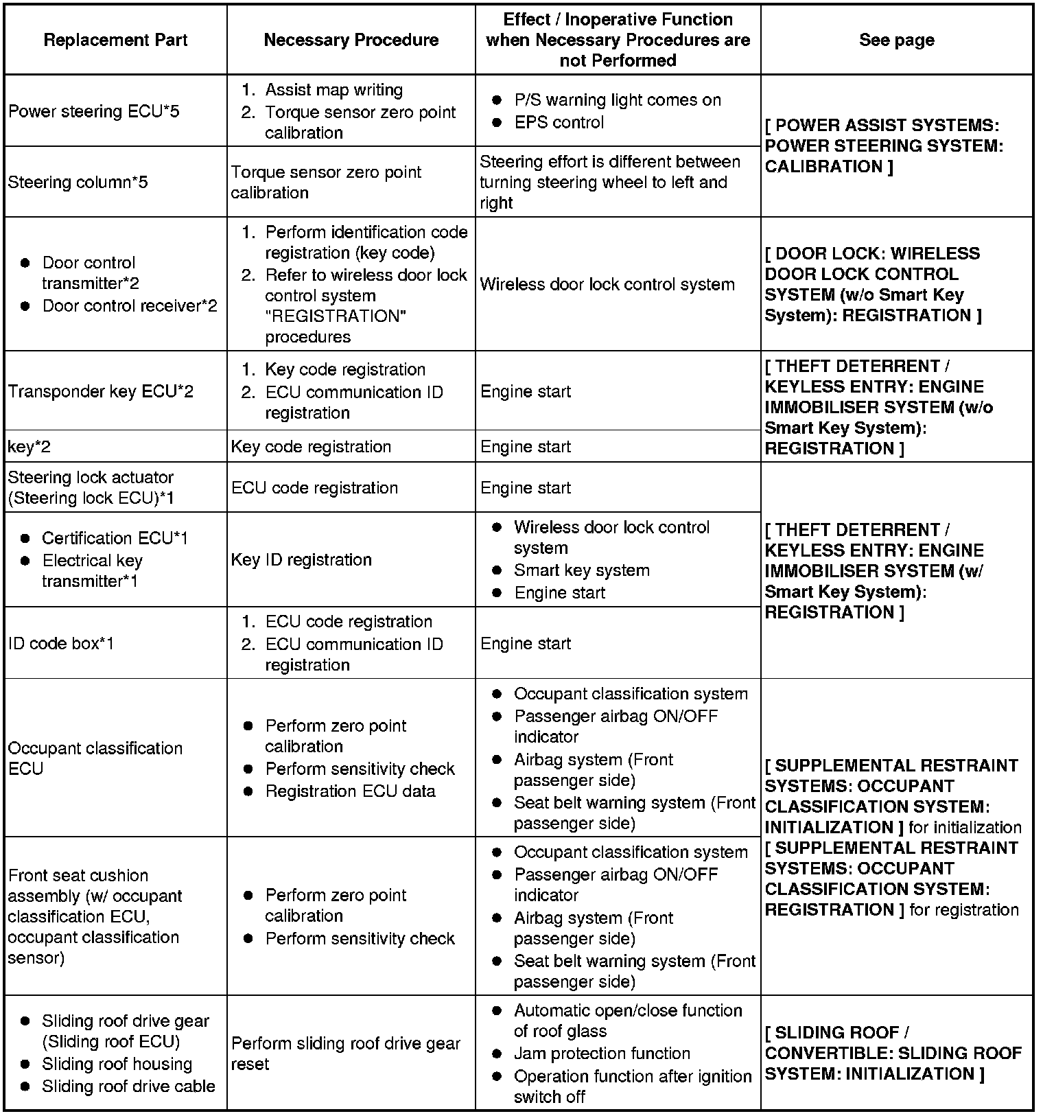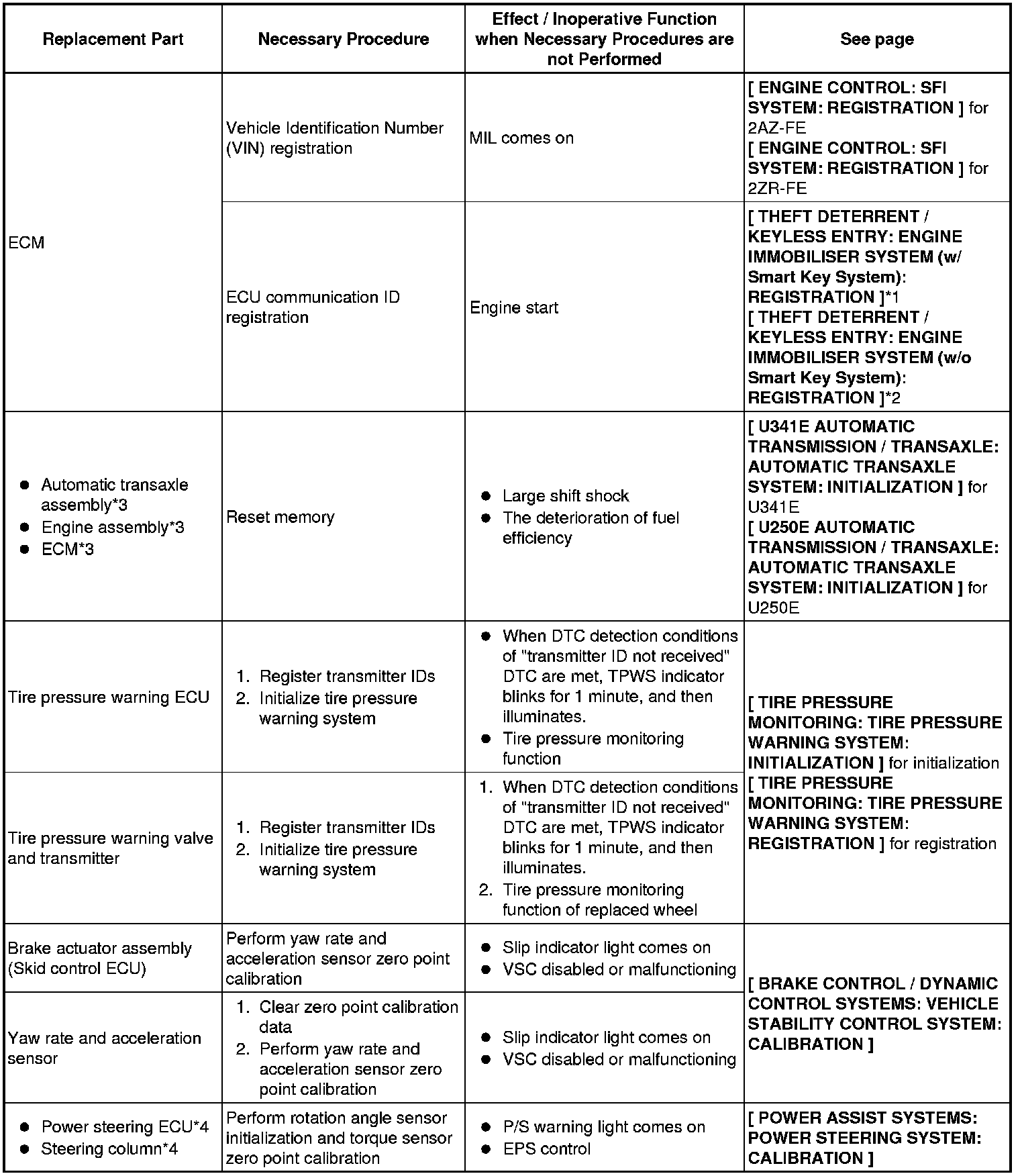 2. PROCEDURES NECESSARY WHEN ECU OR OTHER PARTS ARE REPLACED