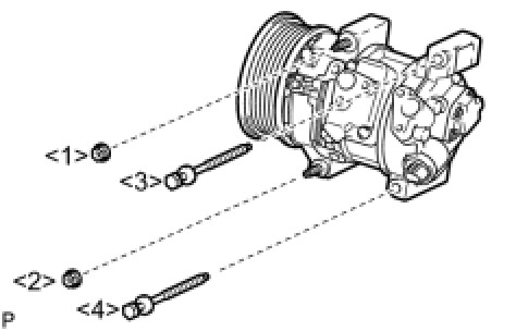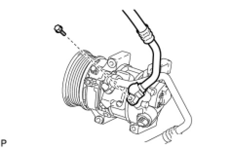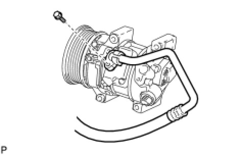 (d) Install the suction hose sub-assembly onto the compressor assembly with pulley with the bolt.