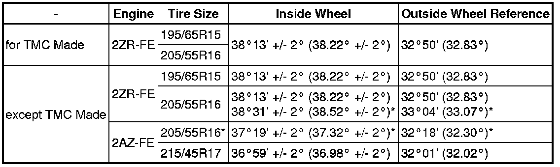 * Before inspecting the wheel alignment, adjust the vehicle height to the specified value.