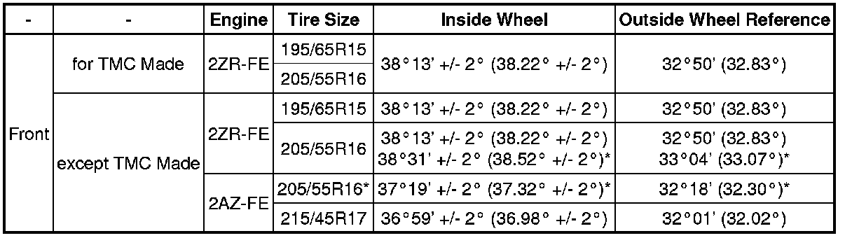 Wheel Angle (Unloaded Vehicle)