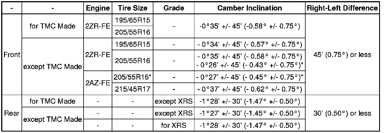Camber (Unloaded Vehicle)