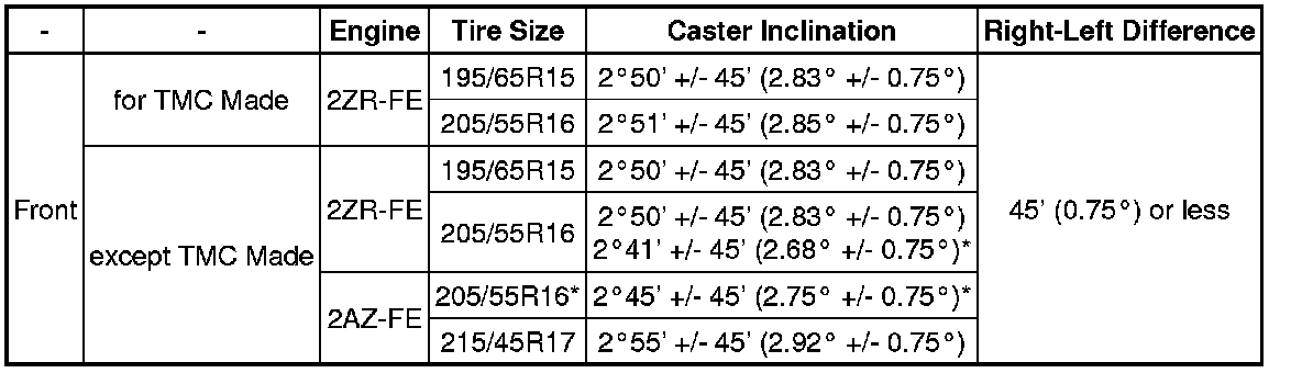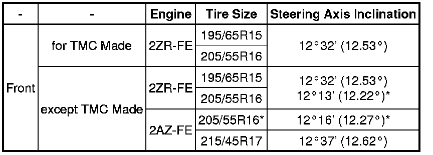 Steering Axis Inclination (Unloaded Vehicle)